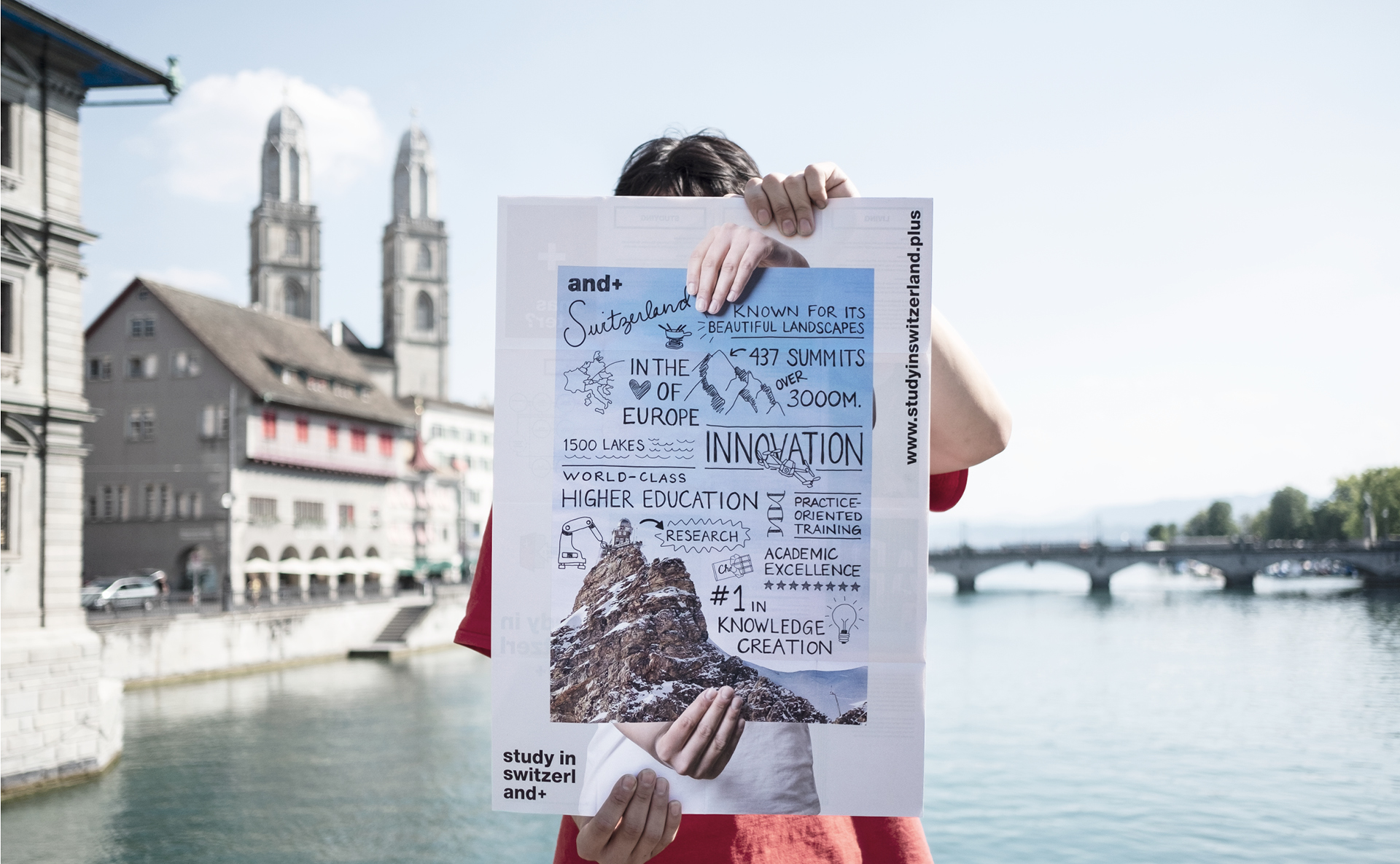 The new website studyinswitzerland.plus is the most important collective information and promotion channel targeted to prospective international students interested in Swiss universities. SNK developed a concept and design that is as informative as it is entertaining and provides quick access to the entire landscape of Swiss higher education. In the spirit of “Swiss Design” developed in the 1950s, Helvetica Bold and a strict grid create a clean, minimalist look. A colorful mix of images, typography, film and illustrations, the design underlines the countless possibilities of the university landscape and the cultural diversity of Switzerland.