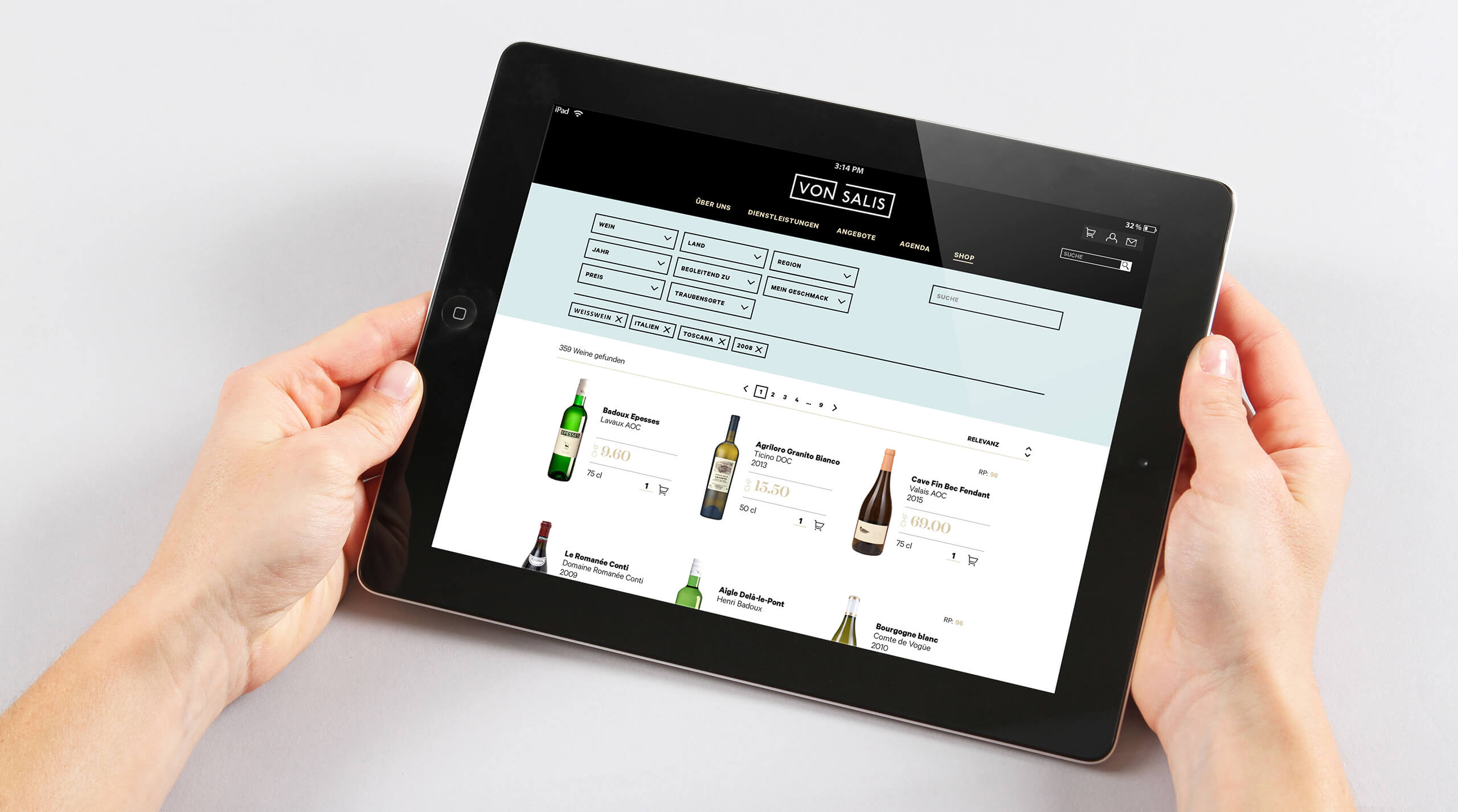 The website and online shop were overhauled to upgrade the digital presence. The result is a positive shopping experience and legible overview of wines. And is that a bold wine or one with an elegant finish? The sophisticated search form also allows users to filter results based on their preferences.