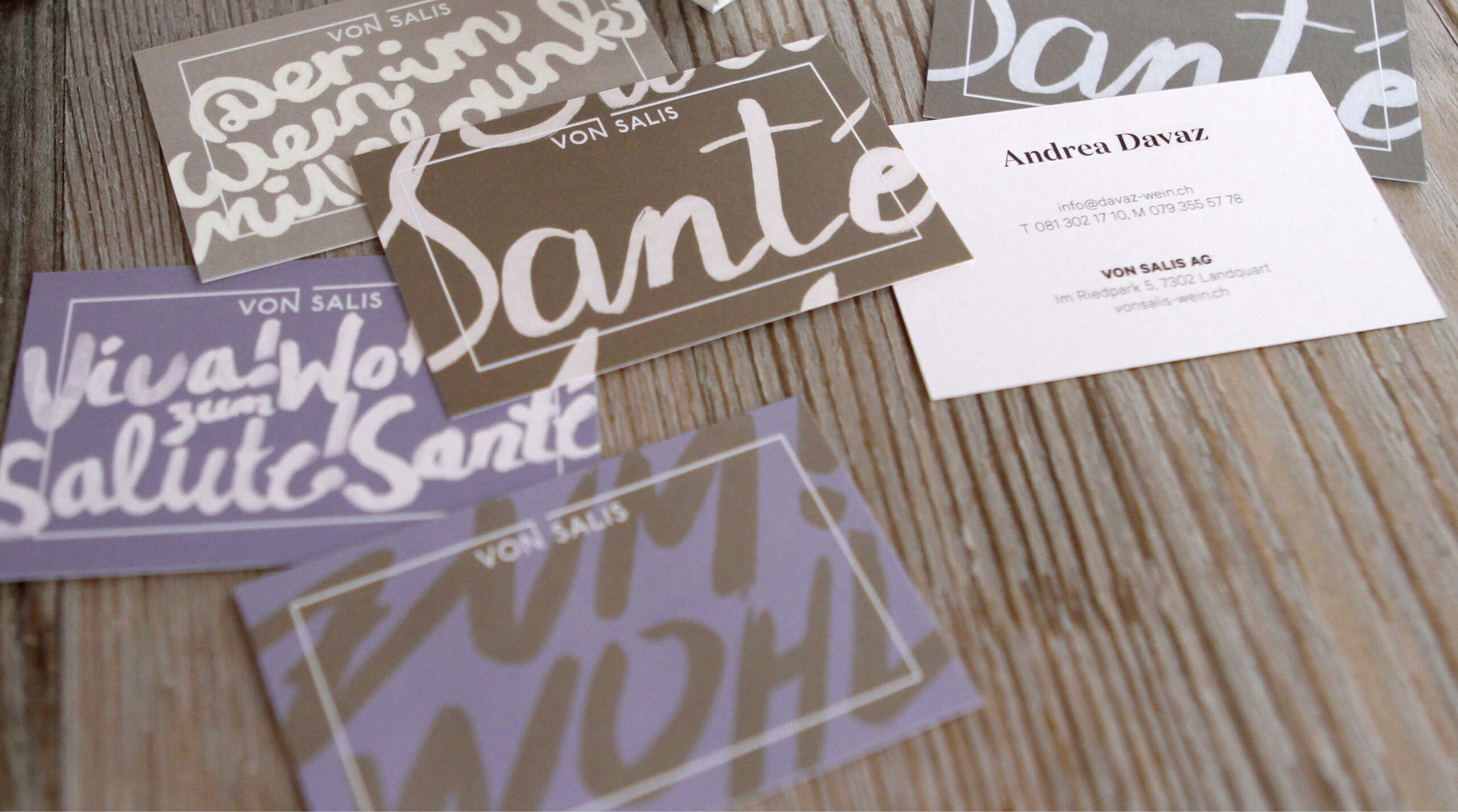 The aim of the rebranding was to bring clarity to communications. Ensuring that both aspects of the business could express their full potential called for different communication contexts. Von Salis addresses its customers either as a wine retailer or a winegrower. This approach was also reflected in the design.