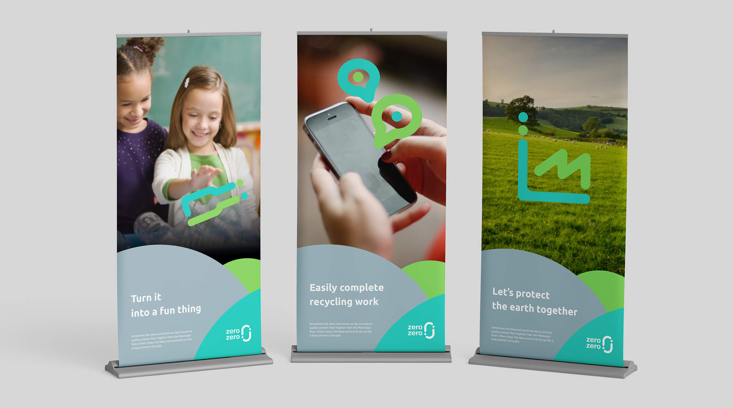 Composed of two distinct shades of green and a smile-like curve, zero.zero’s logo is simple and personal, bringing a smile to customers’ faces. In order to strengthen the brand’s character, we founded our design on the four traits “interesting”, “flexible”, “comprehensive” and “friendly”. A wide variety of implementations will help customers understand this new brand and ecourage them to join forces for a good cause.
