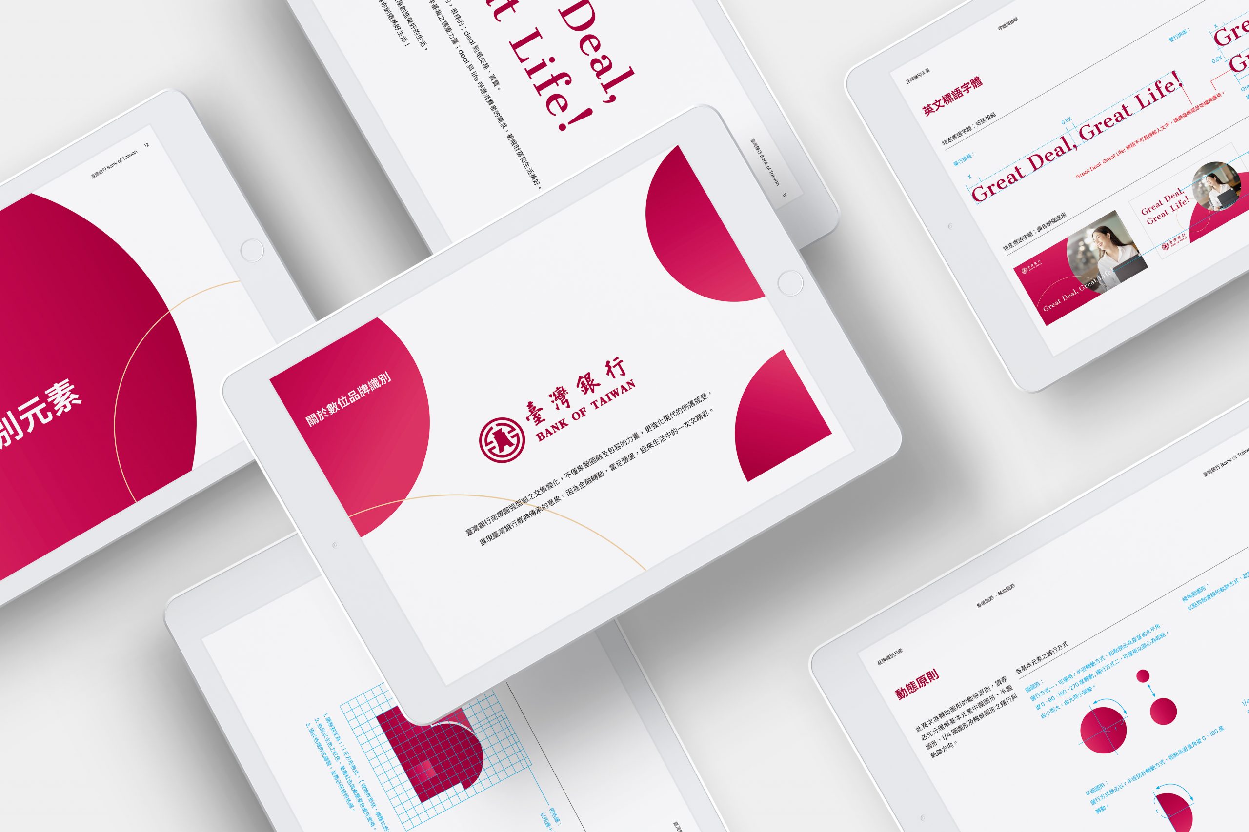 普羅在不更動臺銀原有商標下,與臺銀團隊一同探究品牌歷史與文化脈絡,也同步釐清未來應用原則及方式,明確定義風格、輔助圖形、色彩、圖標、插畫、字體等識別元素,增加使用便利性與易於管理。同時依據識別元素在數位環境中的最佳適配性,延展設計動態商標與旗下各服務的識別系統,發展出有脈絡且具豐富變化的品牌設計系統規範。