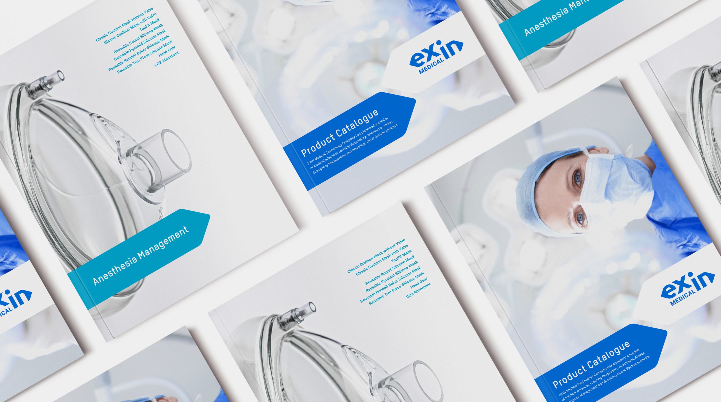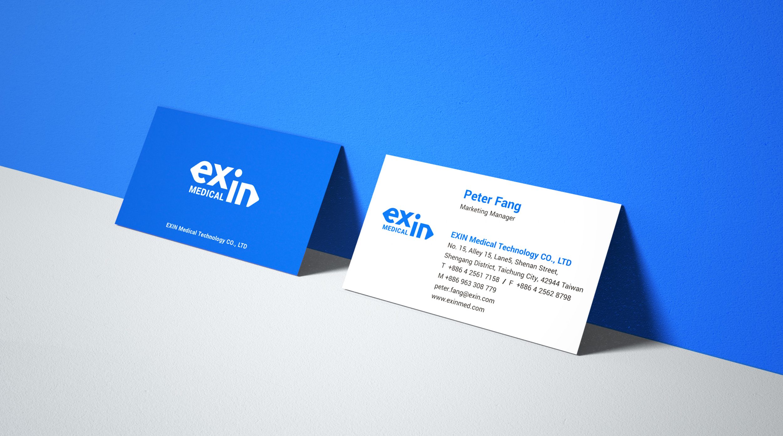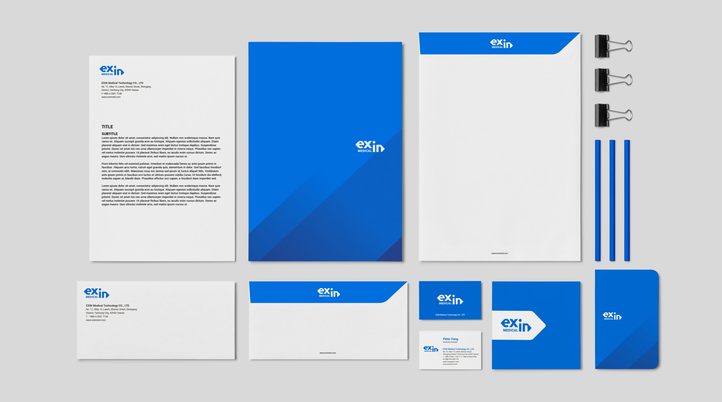 EXIN的品牌商標設計發展於呼吸一進一出的動態意象形塑而成,品牌主色藍色呼應其產業類型並展現出品牌創新與專業的形象,另外,普羅透過輔助色整合不同的產品線,從緊急使用到一般照護將產品定位以顏色做出區別,為品牌做長遠且全面性的規劃。全新的識別系統展現了EXIN在醫療界理性專業的形象與創新的技術,也為新品牌奠定了穩固的發展基礎。