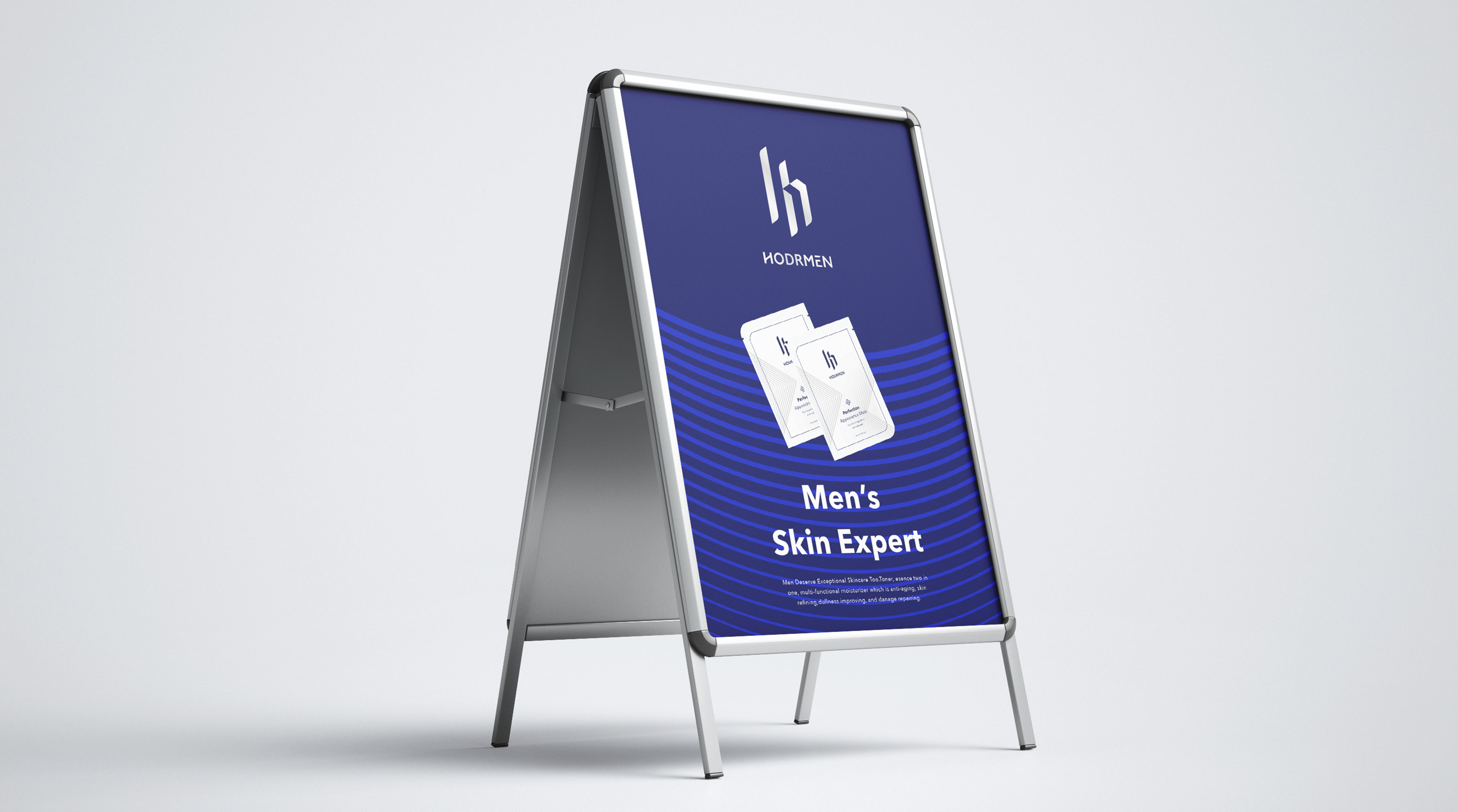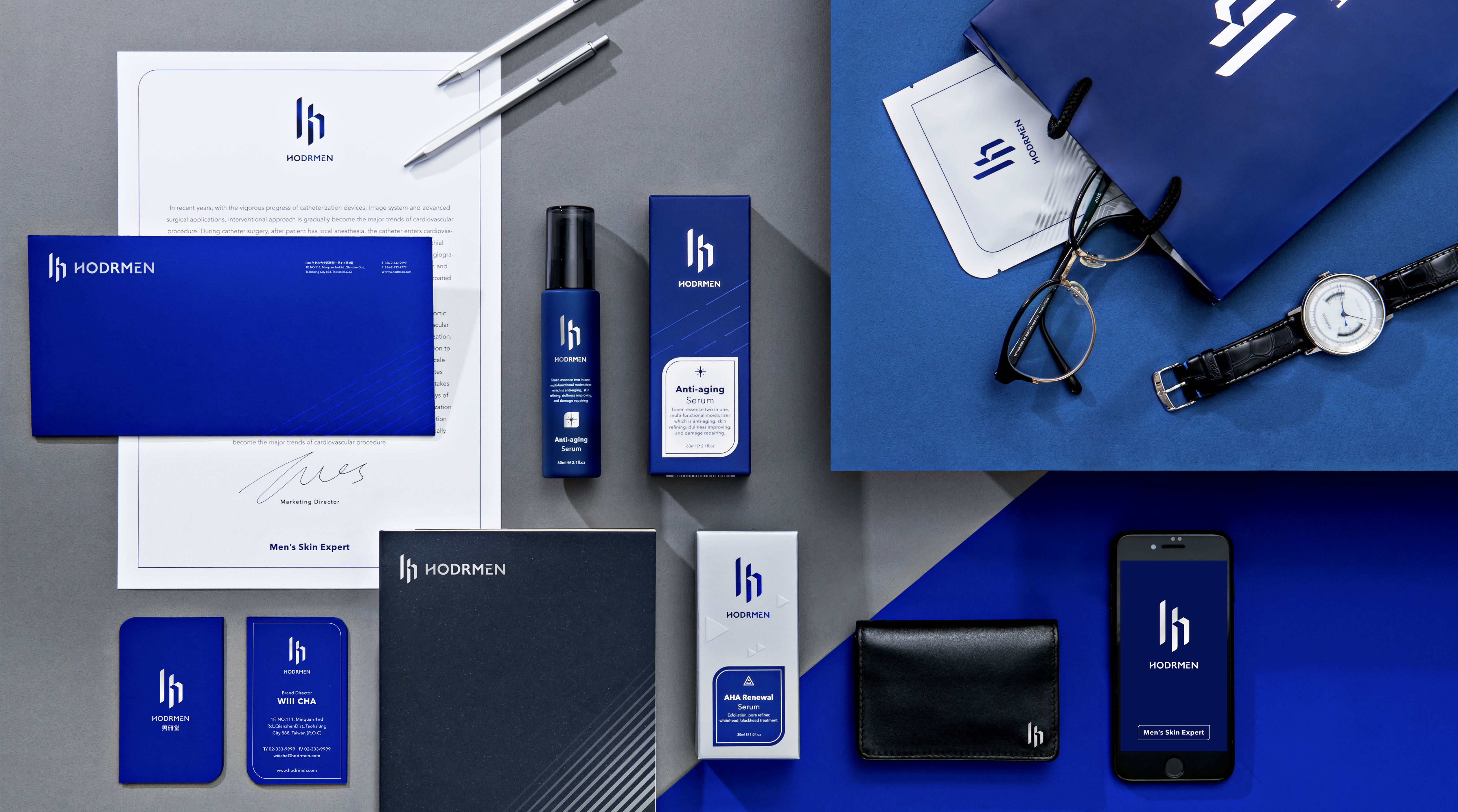品牌新識別設計上,在傳遞專業感的同時,也展現品牌獨特的品味。品牌標誌從HODRMEM中提取字首H為設計靈感,應用正負空間的視覺效果包含兩個小寫h,分別代表 “human”和”humble”;前者象徵以人為本,研發符合亞熱帶男性膚況的產品與服務,後者則彰顯品牌不忘初衷,不斷往前邁進,持續為顧客提供最好的品牌體驗而努力。