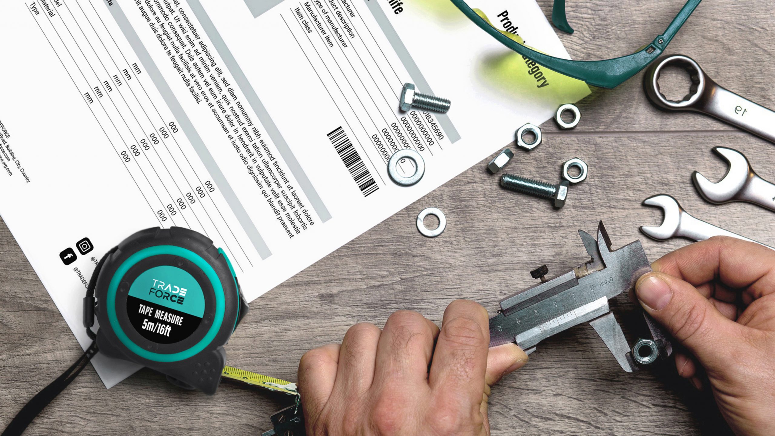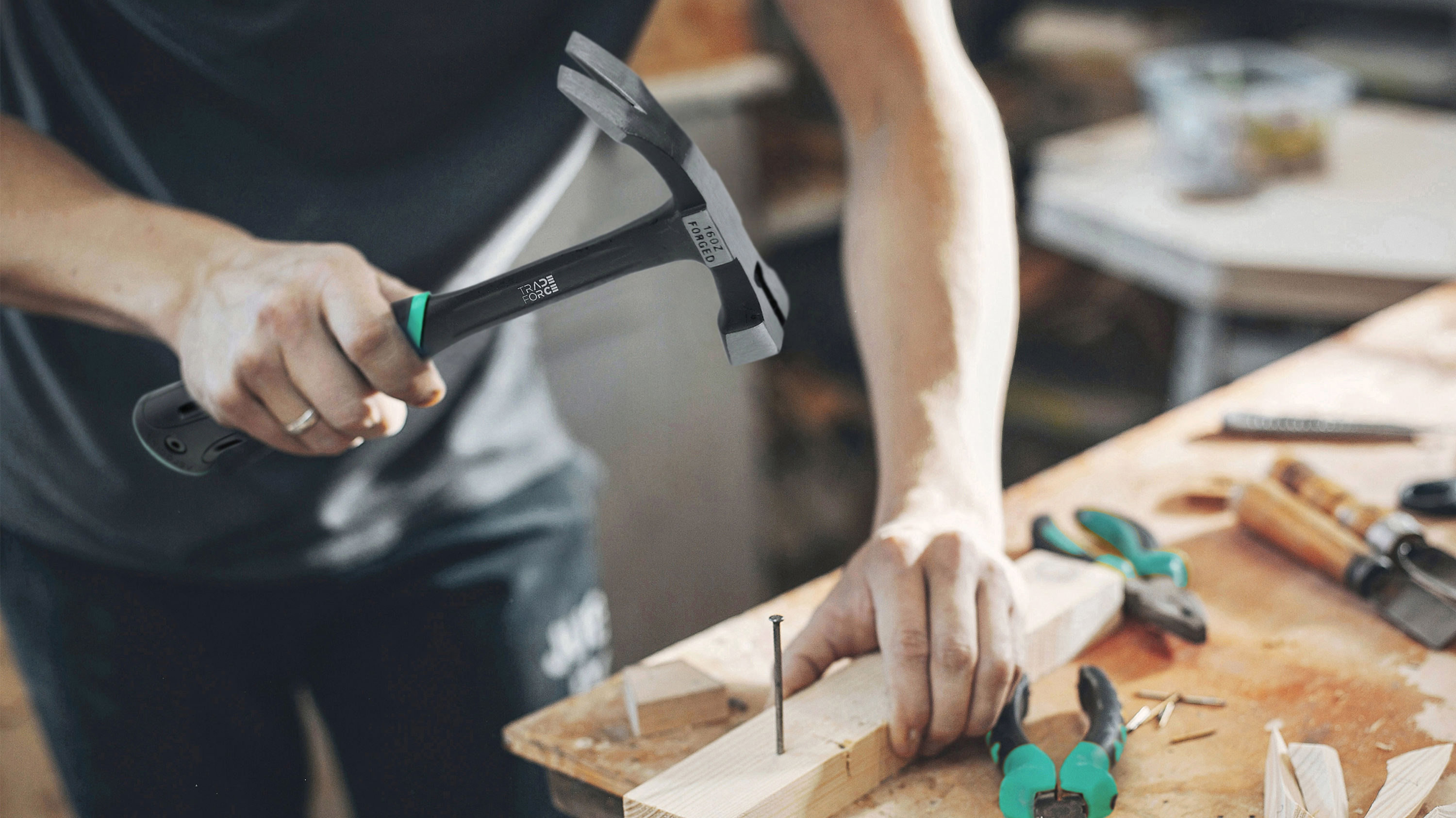 為了能夠在強勢品牌環伺的競爭環境中脫穎而出,TRADEFORCE選擇了不同於產業傳統色系的清新綠色。並且透過帶有時尚科技感的圖形,營造出與產業既有刻板印象截然不同的品牌形象。擺脫五金工具給人一成不變、保守無趣的印象。在設計過程中,為凸顯出工具給予人的專業感以及功能性,以具有動態感的輔助圖形傳遞出工具符合人體工學的手感,進而描繪出品牌的品質以及使用感受。