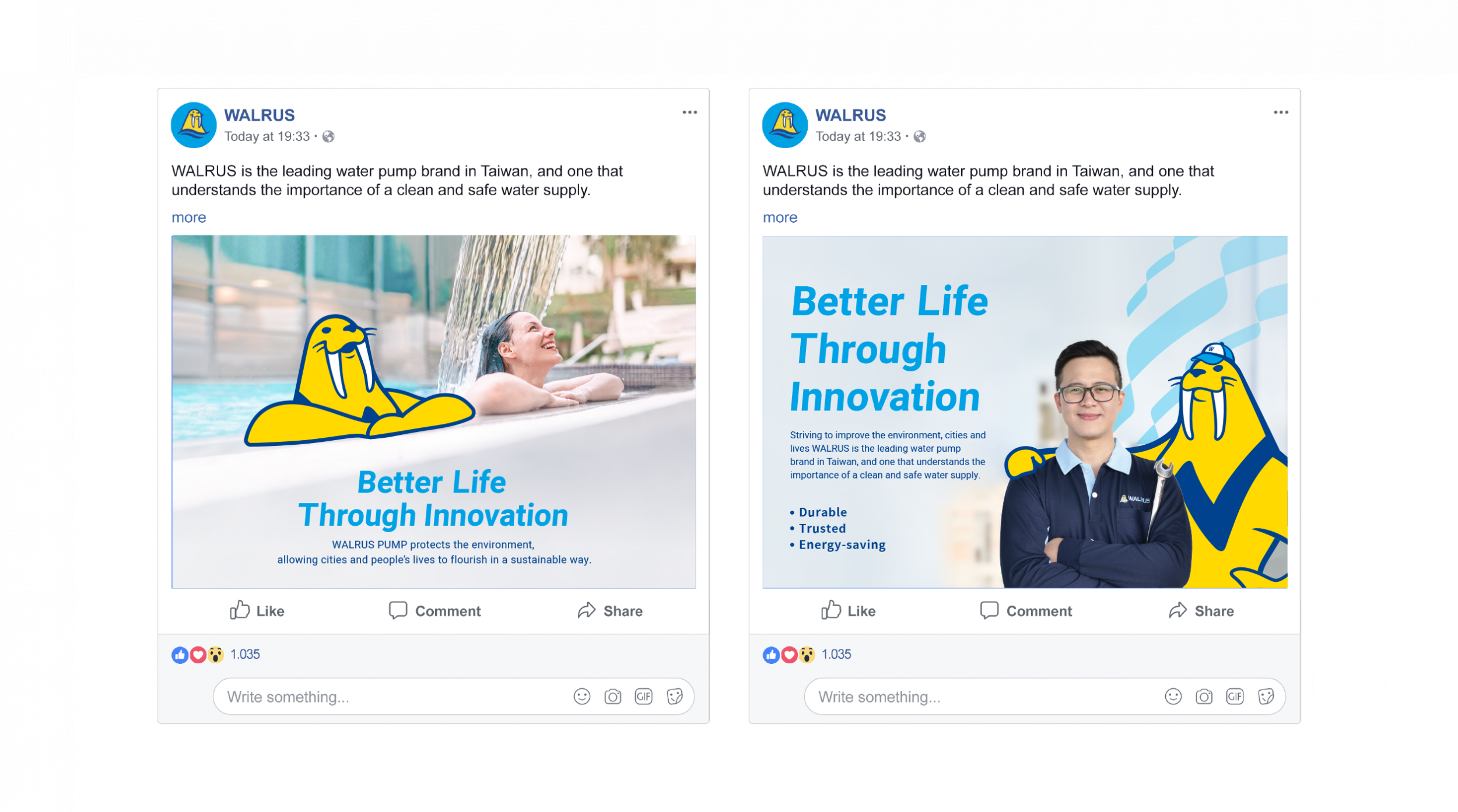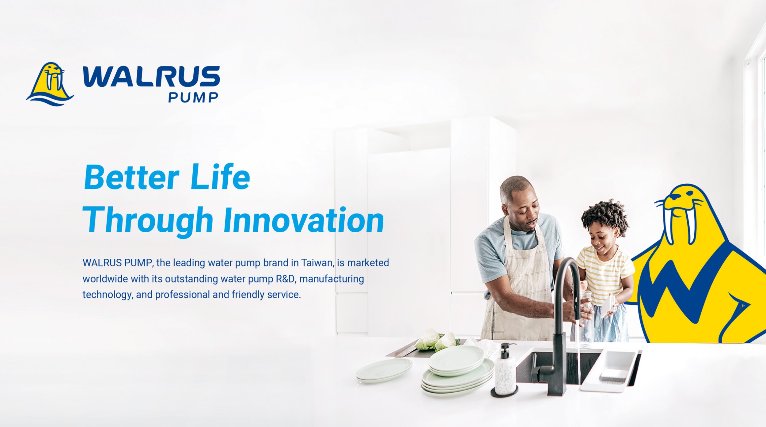 雖然WALRUS大井泵浦已是台灣水泵的領導品牌,為了拓展國際市場,需將現有的品牌資產進一步優化,以國際領導品牌之姿進入更多市場。