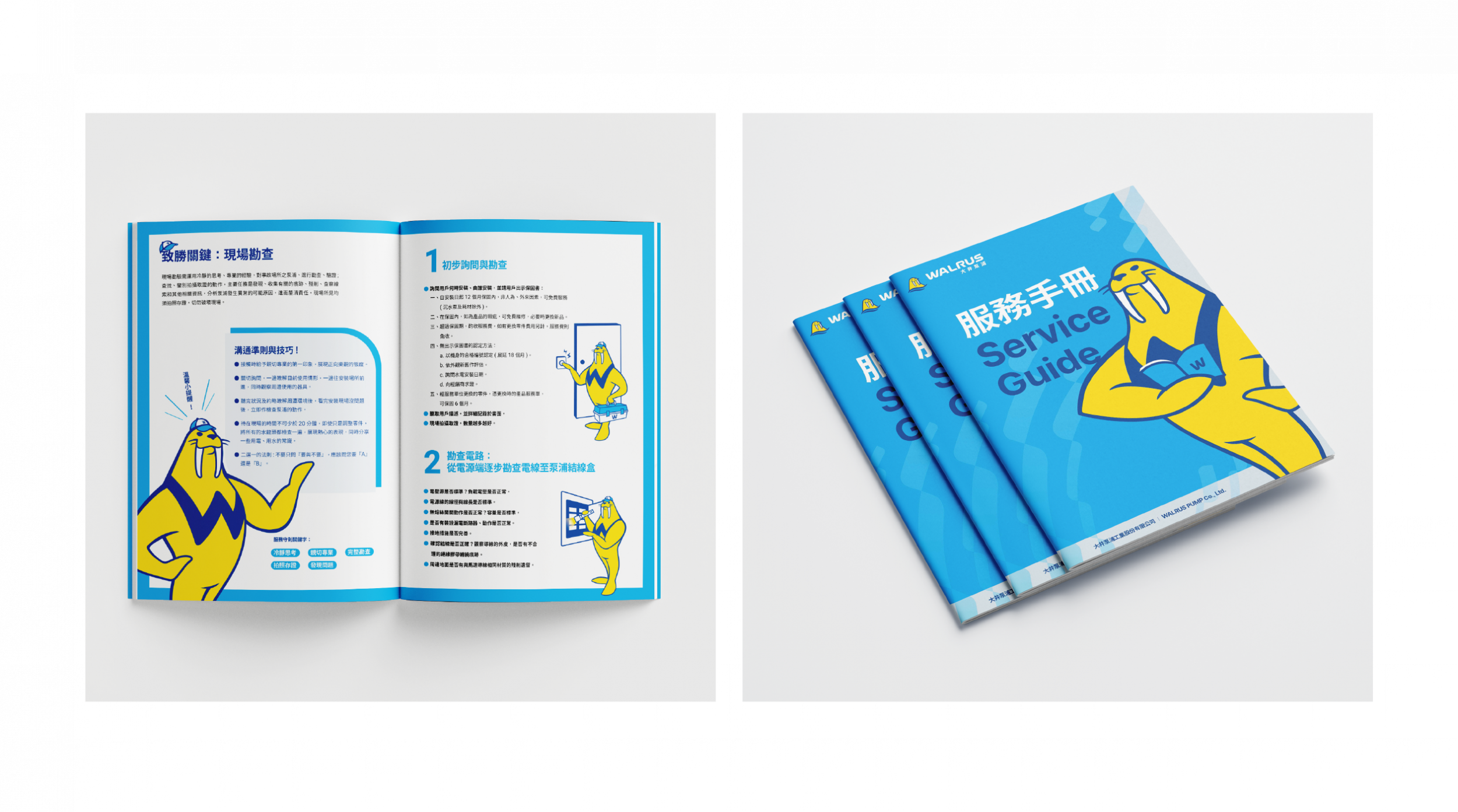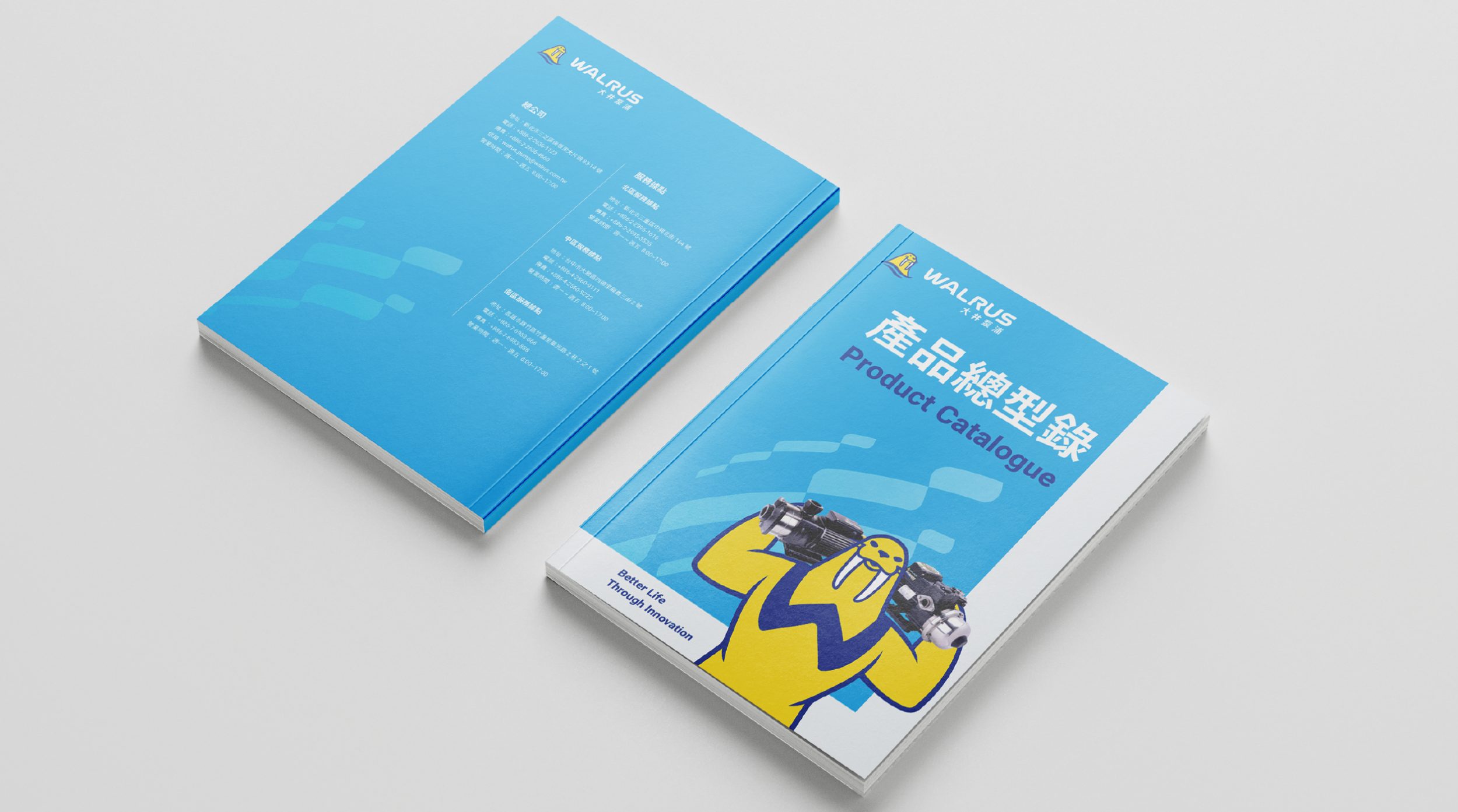 普羅亦發展出系統化的品牌識別元素與設計應用物,包括品牌圖像規範、PowerPoint簡報模版、產品型錄、海報、線上廣告與網站,以嶄新的面貌宣示WALRUS大井泵浦進入新的里程碑,持續傳遞品牌精神!