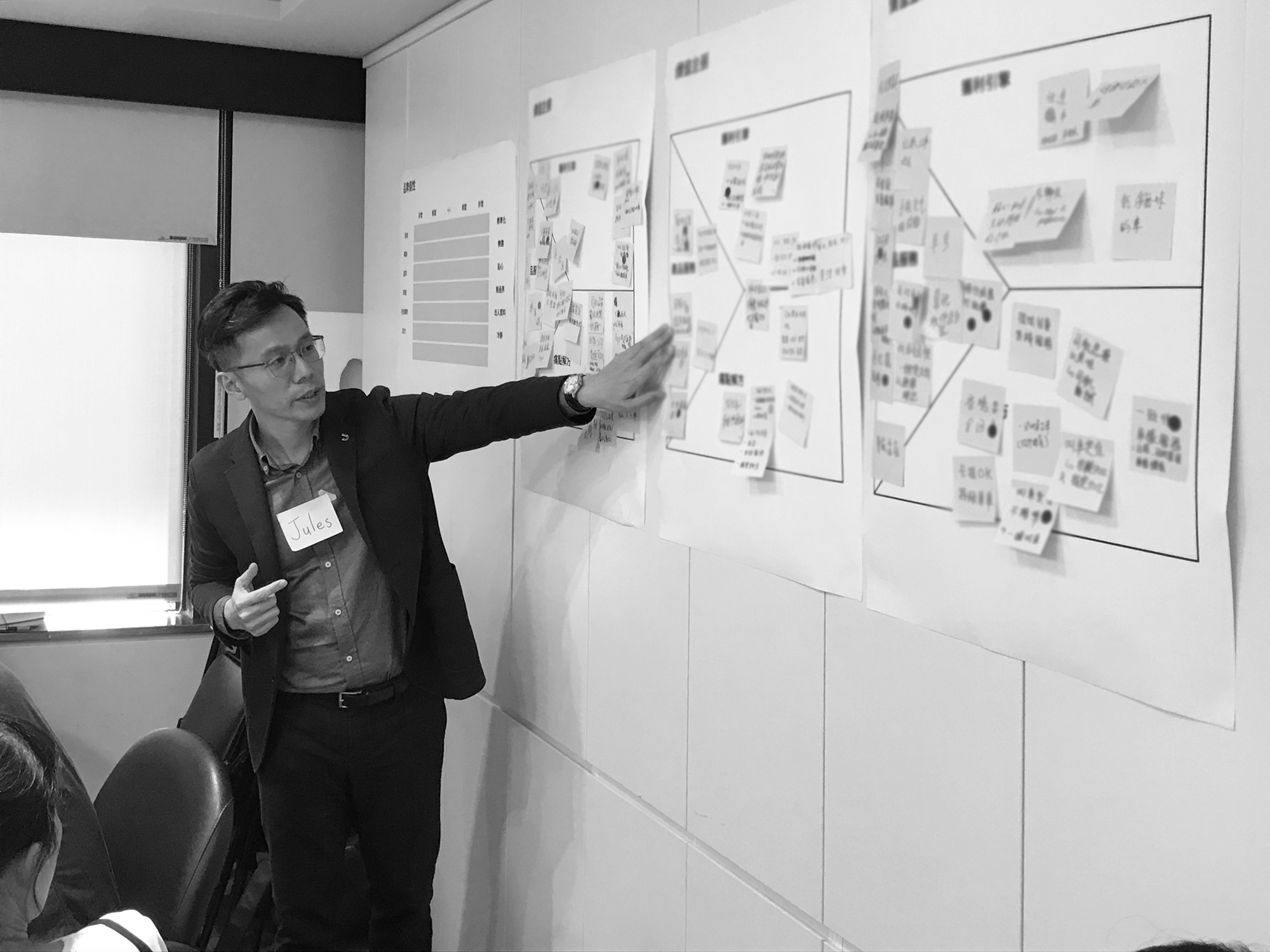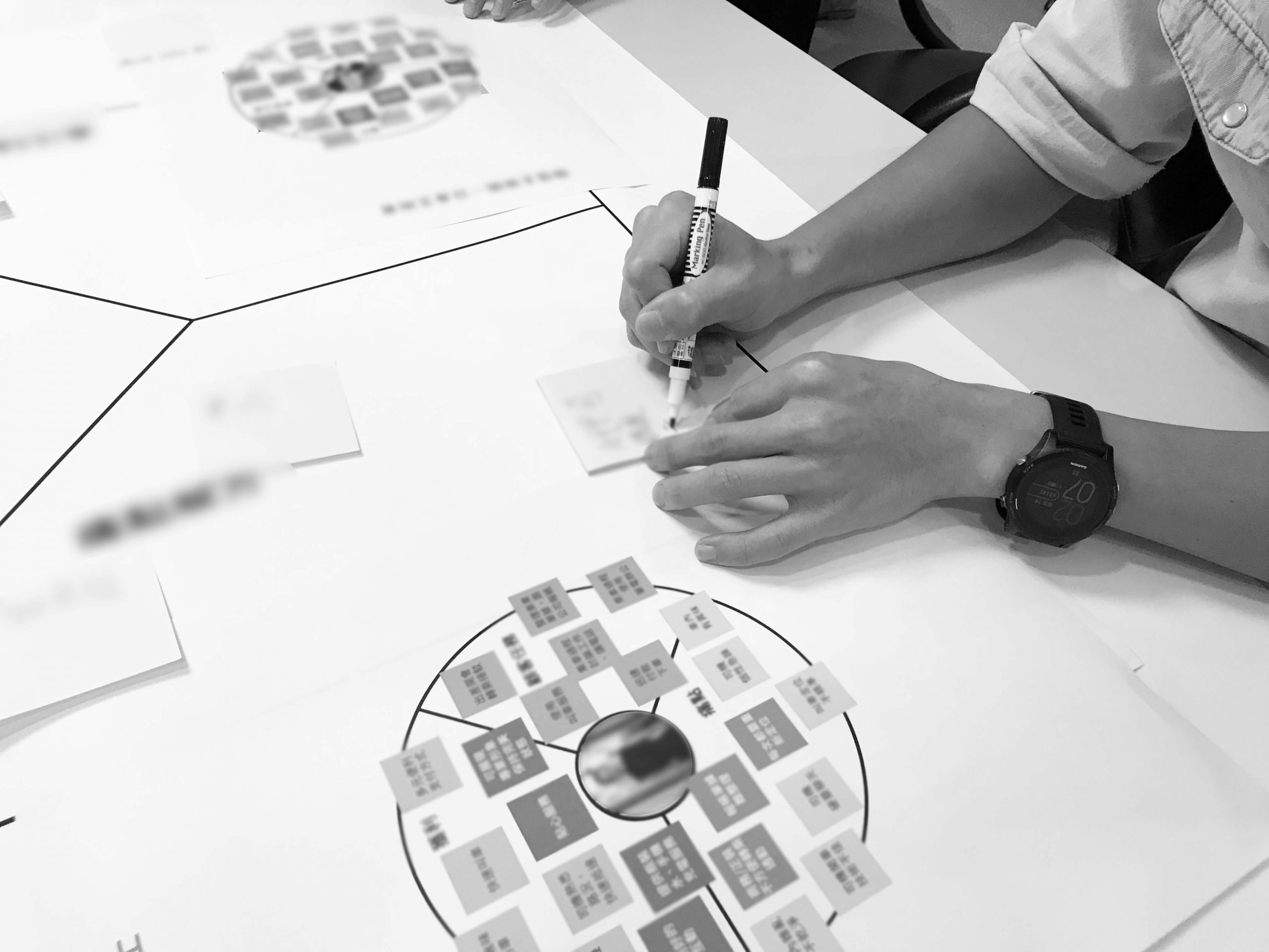 在發展 yoxi 過程中,陸續有來自不同專業的同仁加入團隊,彼此對於 yoxi 品牌的策略基礎,包括:願景、使命、目標客群、價值主張等已有大致方向。透過普羅與策略夥伴AJA所設計的工作坊,引導團隊形塑愈加清晰的品牌策略,並將這些論述鏈結到命名、商標設計與視覺元素。